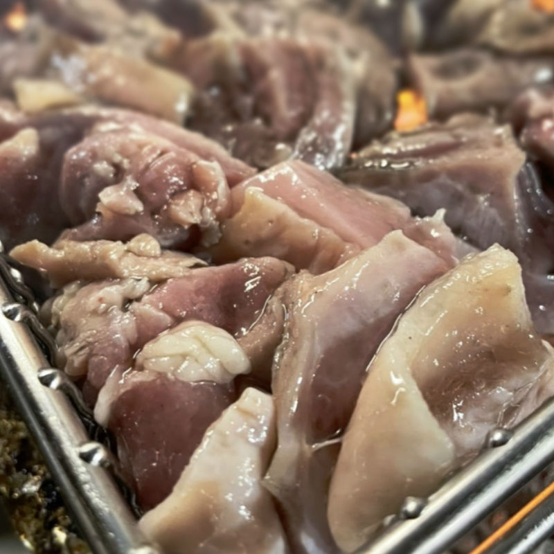 フランス産ロレーヌ岩塩で味付けをし、備長炭で炙り焼く事で、余分な脂は落ちうっすら黒く色づき炭の香りが癖になる美味しさです。